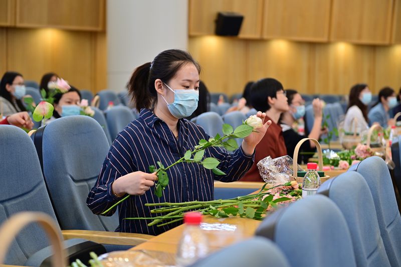 本次活动邀请了有丰富经验的花艺师为女职工们授课,介绍了插花使用的花材、花束造型、色彩应用、插花技巧及鲜花养护等内容,并结合现场实操,详细讲解如何制作一束层次分明、错落有致的花束,将插花艺术生动形象地展现给每位女职工。