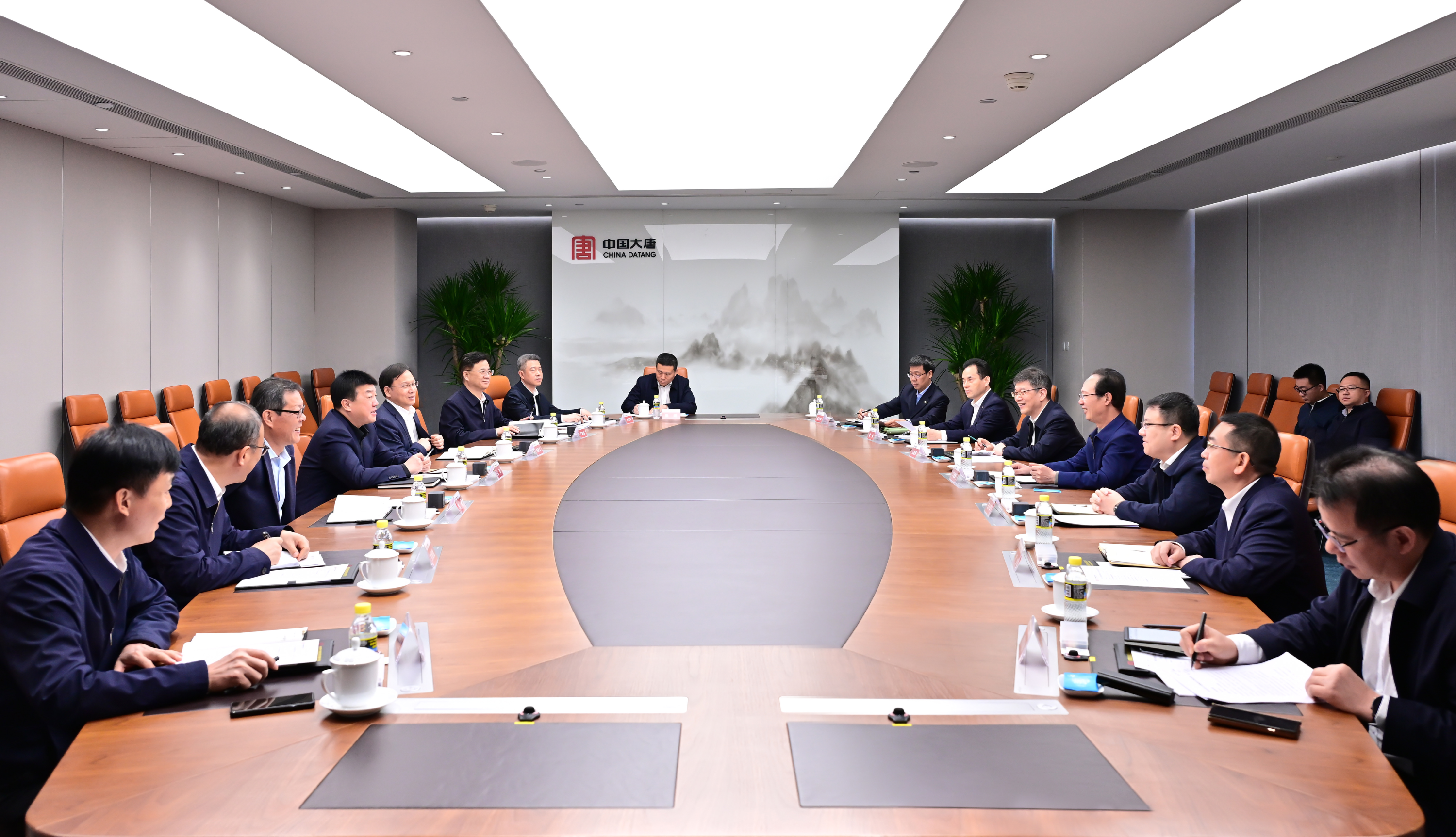 吕军、张传江对丁焰章一行到访表示欢迎,对中国电建长期以来给予中国大唐的支持和帮助表示感谢。吕军表示,中国大唐坚决贯彻落实习近平总书记重要讲话和重要指示批示精神,依托清晰战略推动高质量发展,发展势头良好,运营质量提升。中国大唐与中国电建均为我国清洁低碳能源转型的支撑力量和深度参与者。希望双方在既有合作基础之上,充分发挥各自优势,围绕产业链供应链、国内项目开发、绿色低碳转型、国际化业务、新质生产力等深化合作,携手为推动我国能源事业高质量发展作出更大贡献。