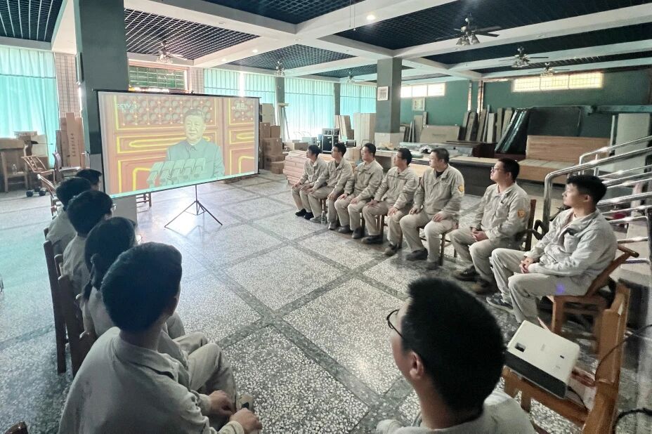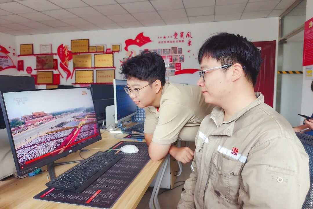 宁夏分公司组织职工收听收看九三阅兵直播,共同见证这一激动人心的历史时刻,眼神中充满了自豪与敬意。