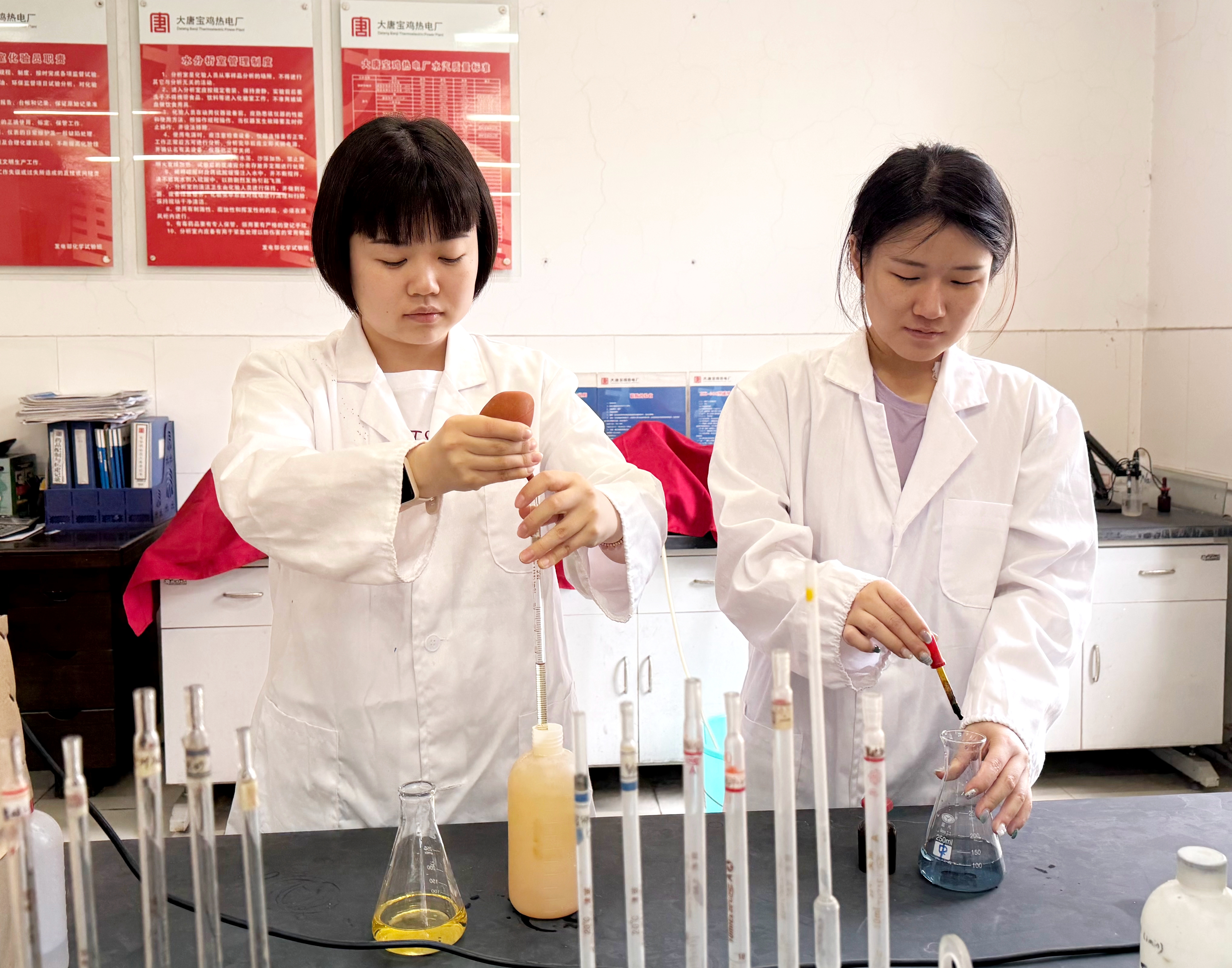 盛夏的骄阳如同耀眼的金箔,滚烫的热浪肆虐在西府大地上。当人们想尽办法躲避酷暑时,宝鸡热电厂的化学实验室里,有着一群执着的“微观守护者”,他们手持精密的仪器,在瓶瓶罐罐与数据报表之间,用专业与坚守,为电厂的稳定运行筑起一道隐形的防线。