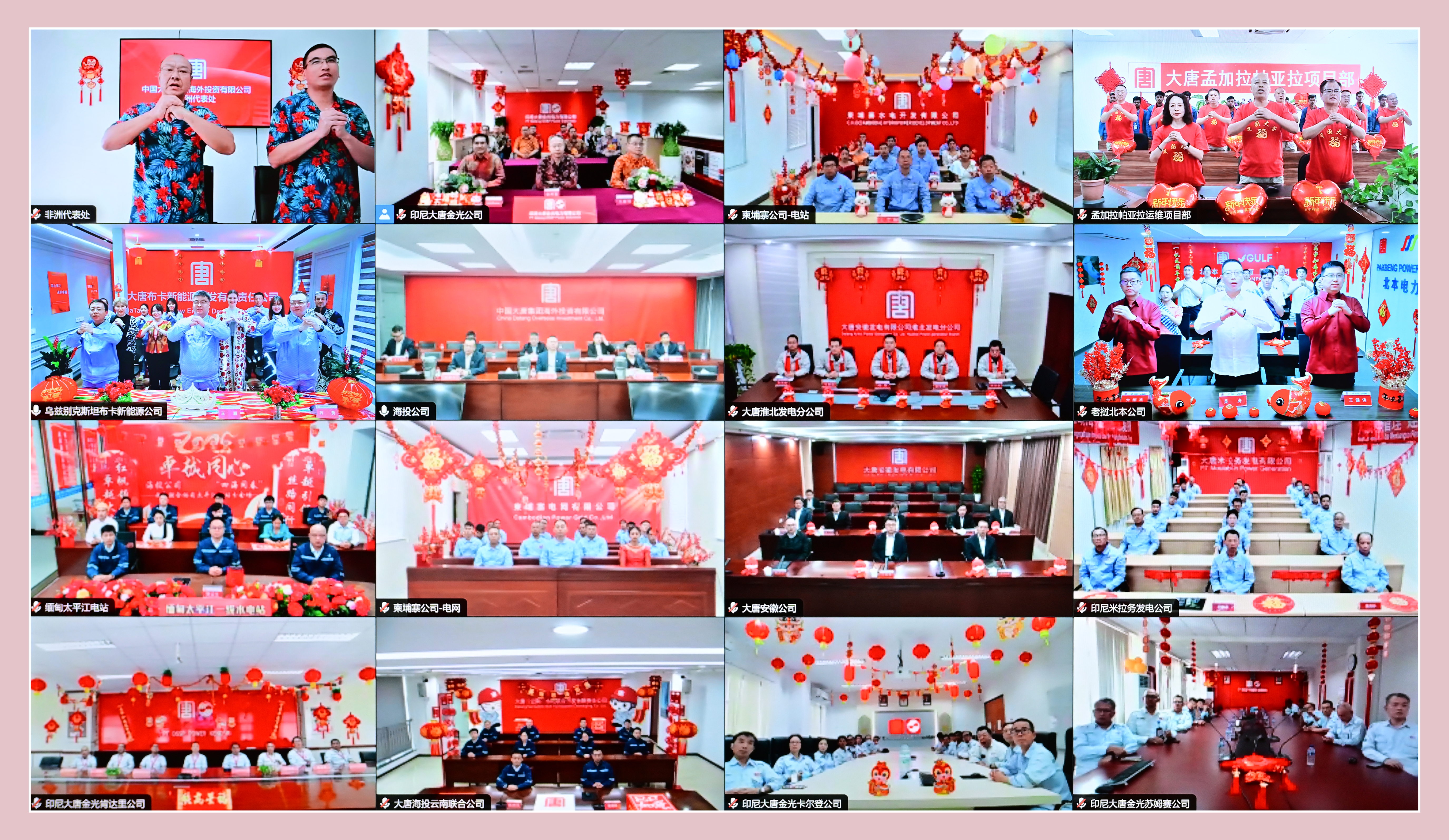 本网讯 “可敬的海外同志们,大家辛苦了!”“祝愿大家度过一个祥和喜庆的春节,祝愿大家在海外工作平平安安、顺顺利利、心想事成!”1月26日,在农历乙巳蛇年来临之际,中国大唐集团有限公司召开2025年境外机构新春慰问会。集团公司党组书记、董事长邹磊以视频连线方式,代表集团公司党组向奋战在境外一线的干部职工及家属拜年,向他们致以真切的关怀慰问及美好的新春祝福。