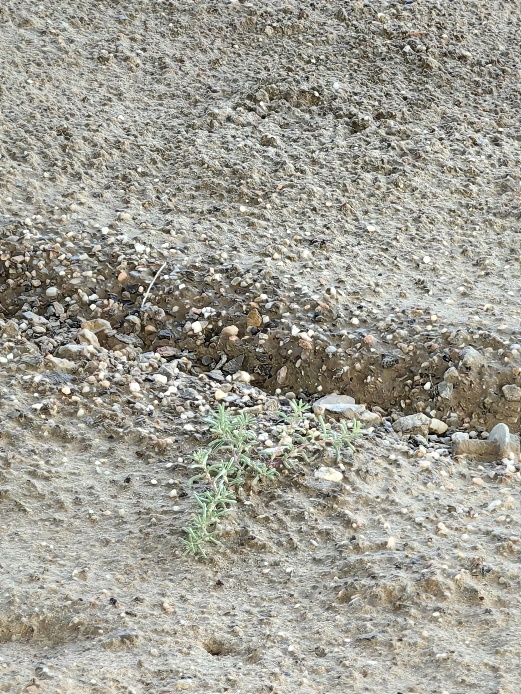 受光伏板遮挡,记者发现每块光伏板遮挡下的阴影中土地都有不同程度的湿度变化,有些土地上竟然长出了小草。
