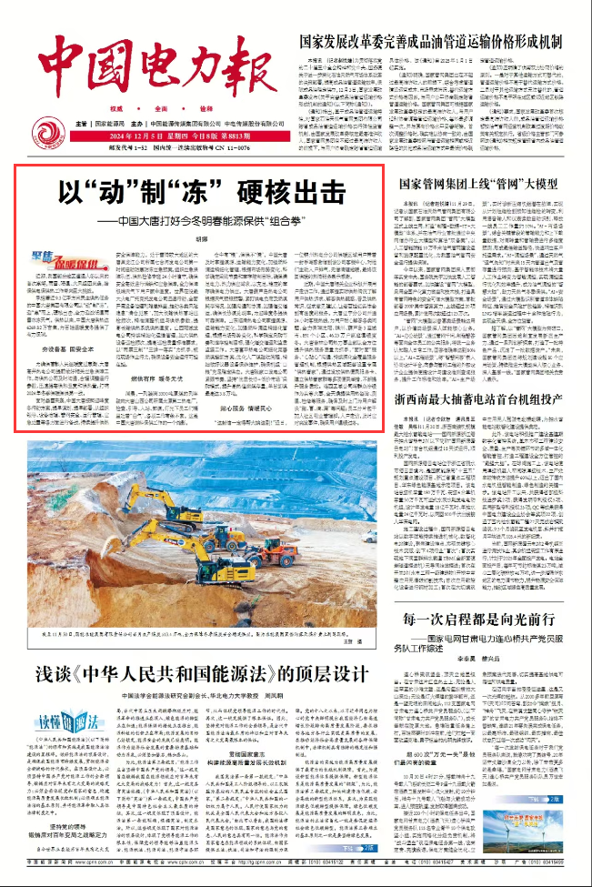 2024年12月5日中国电力报第8813期 第一版 头版
