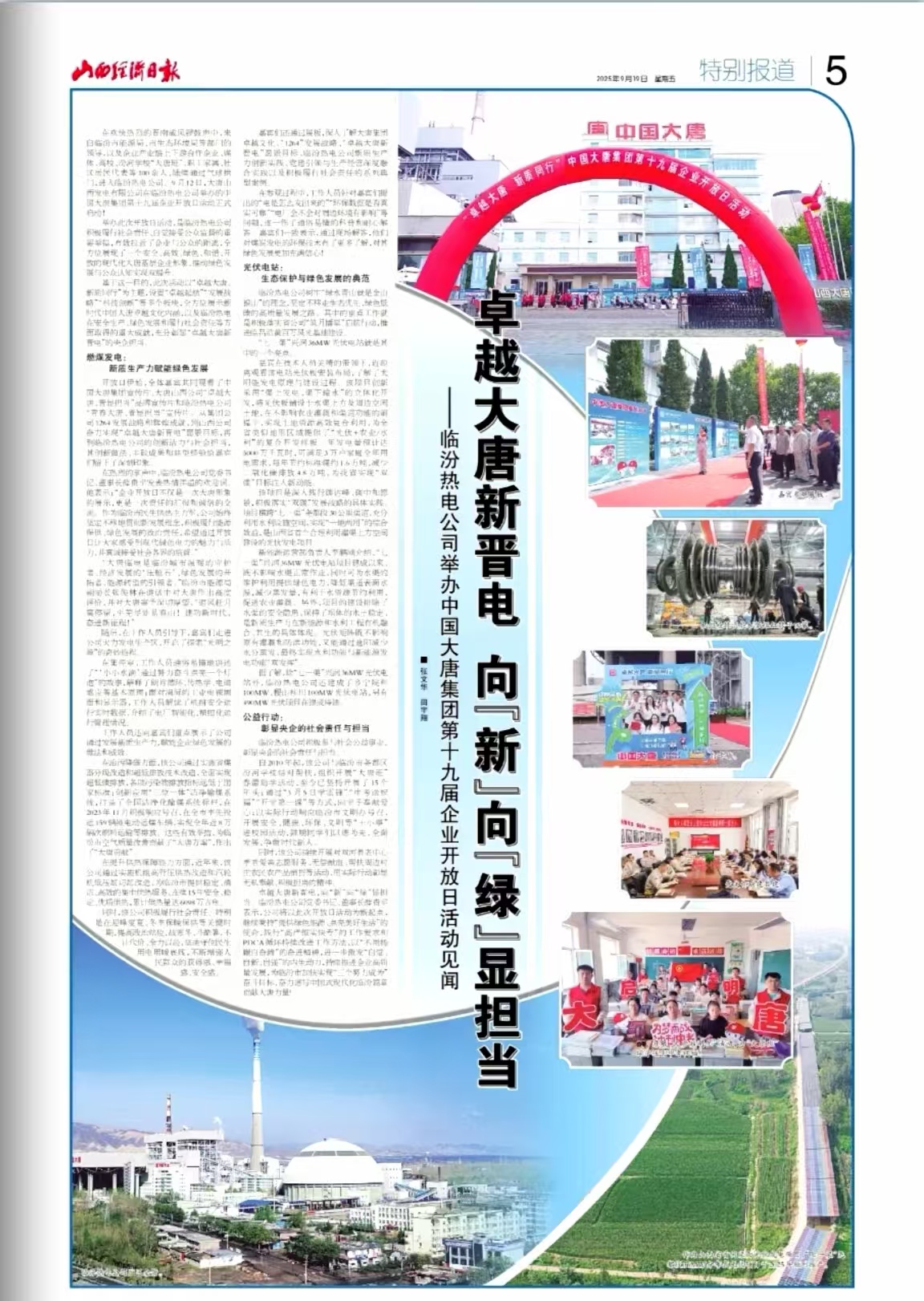 [山西经济日报]2025-09-19-5卓越大唐新晋电 向新向绿显担当——临汾热电公司举办中国大唐集团第十九届企业开放日活动见闻