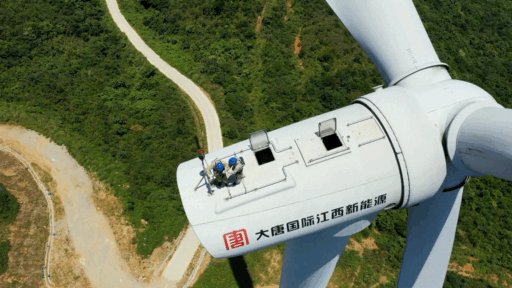 中午,我跟着送饭的车前往现场,还帮他们带去了公司工会“特供”的冰镇盐汽水。穿上厚重的连体服,踩着免爬器“滴嘟滴嘟”通向80米高的机舱,我感受着随着高度而逐渐上升的温度。