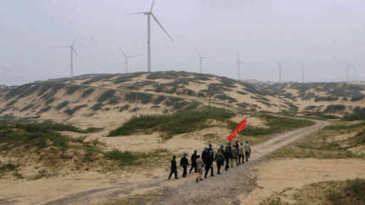 我招呼他们先把饭吃了,王鹏却着急往风机轮毂里钻,他说:“换完变桨电机再吃,另外两个同事都还在里面等我呢。”我向狭小的通道内探了探头,轮毂内的温度竟然比机舱内的温度还要高,测温枪上显示足足有50度。我看着三位大汉面面相觑,他们脸上豆大的汗珠在莹莹灯光的映照下愈发显得耀眼。 1、2、3,1、2、3,他们憋红着脸,合力将一百多斤的电机抬下,再用安全绳将电机挂好。更换完电机,他们瘫坐在地上,笑着享用今天的午餐。青春就是如此:艰难困苦得以成长,汗流浃背得以成熟,理想信念得以团结。