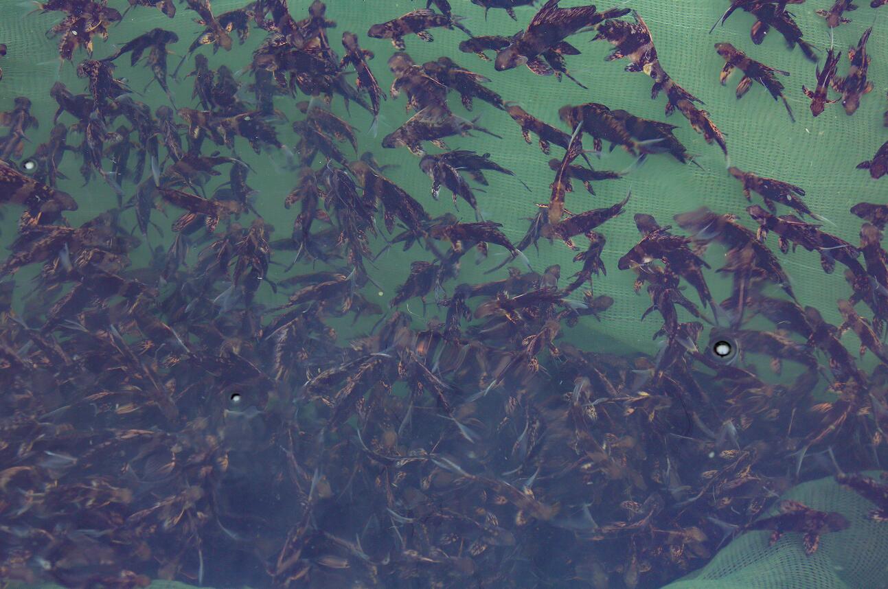 4月12日,重庆分公司彭水-武隆银盘水电站鱼类增殖放流站内,40个方方正正的水池内,工作人员在为水中的鱼苗充氧。这个放流站堪称鱼类“托儿所”,有亲鱼池、苗种池、繁育车间、供排水系统等完备设施,能够满足种鱼饲养、鱼苗孵化和培育等要求。