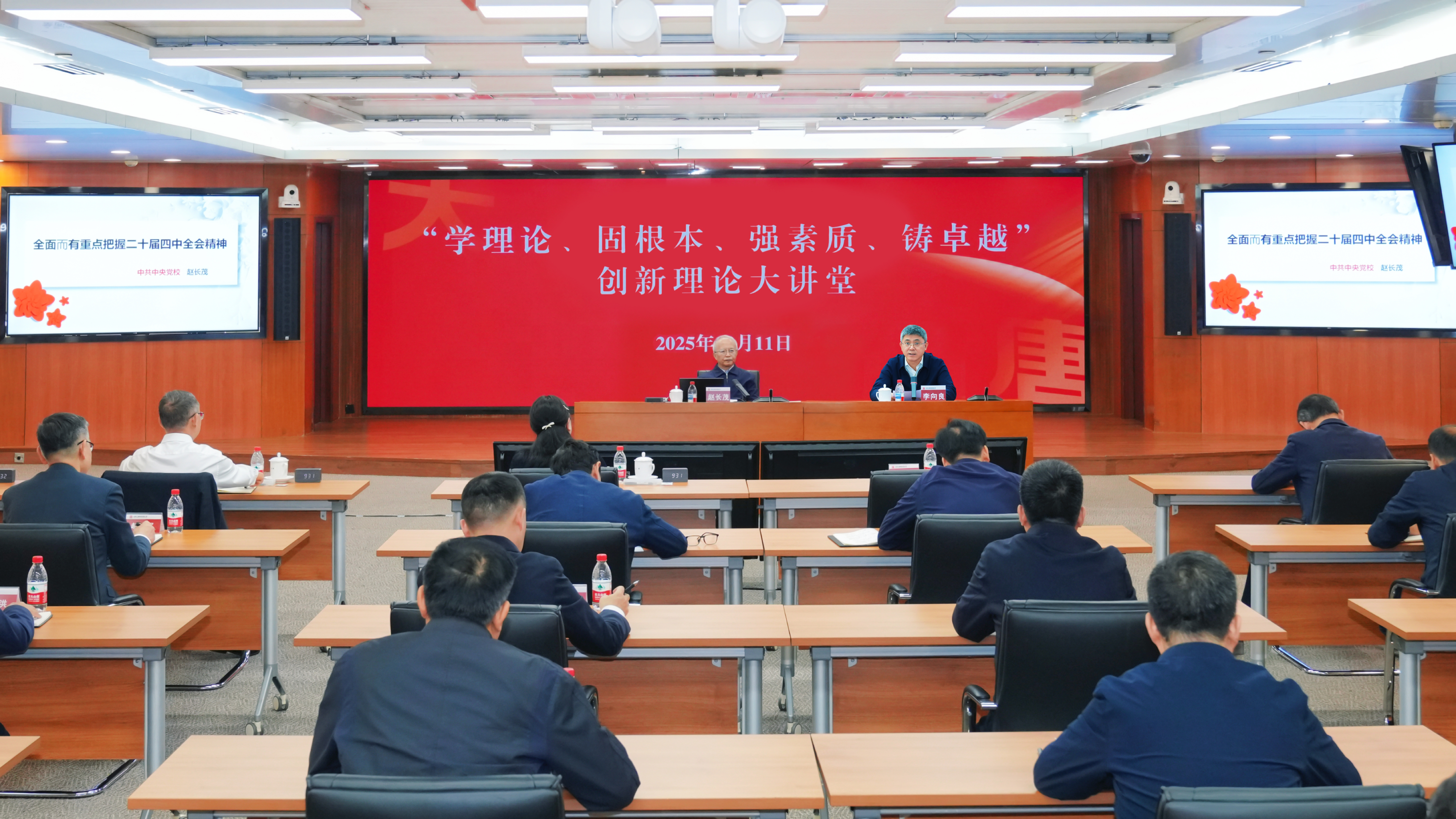 11月11日,中国大唐集团有限公司“学理论、固根本、强素质、铸卓越”创新理论大讲堂开讲,邀请中国公共经济研究会会长、中央党校原副校长赵长茂作《深入学习贯彻党的二十届四中全会精神,推动“十五五”高质量开局》专题讲座。集团公司董事、总经理、党组副书记李向良主持讲座,集团公司领导王瑛、曲波、苟伟参加讲座。